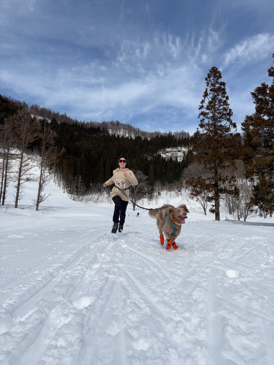 しっかりとした装備をしないと肉球の破損、毛が雪玉になってしまいます。