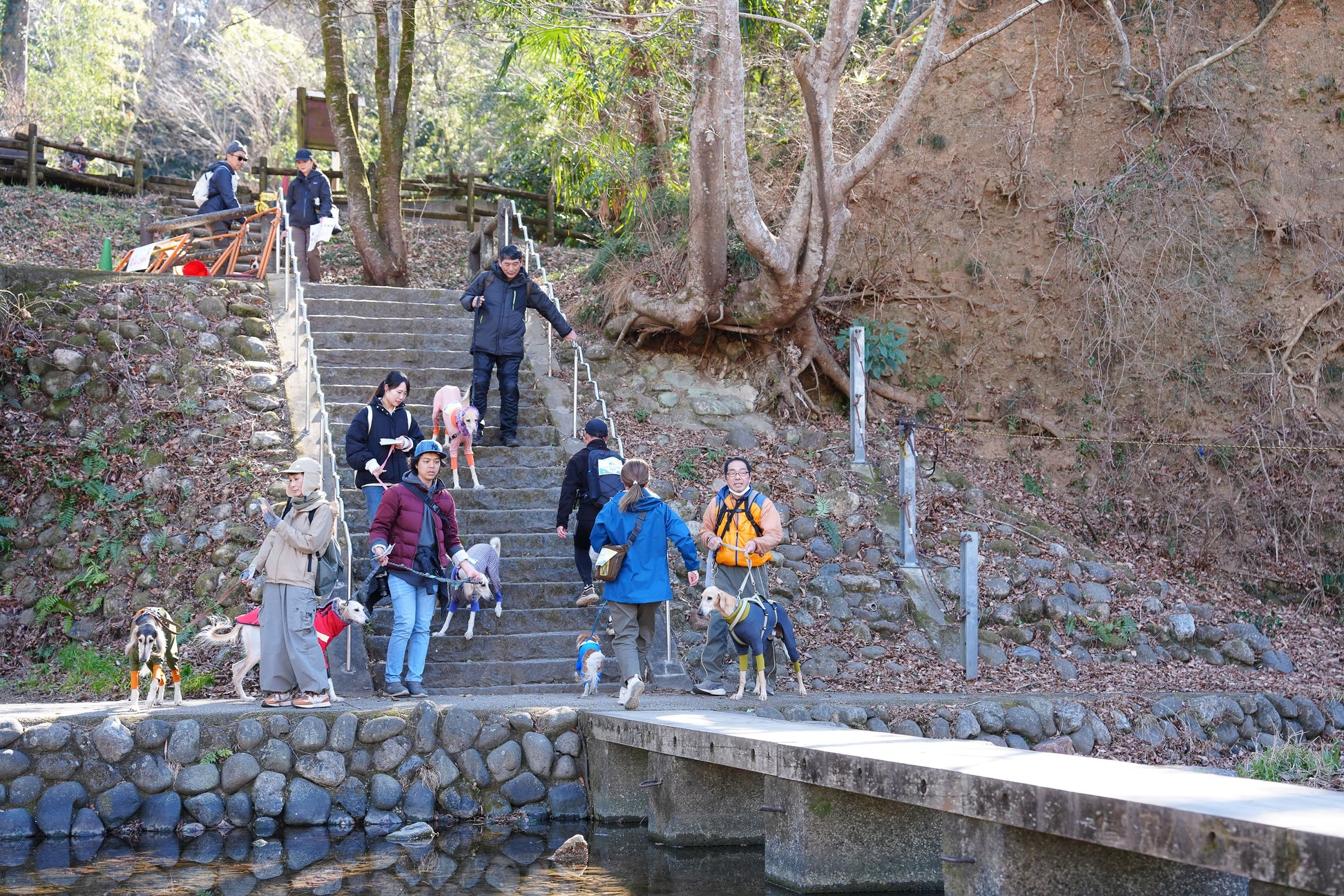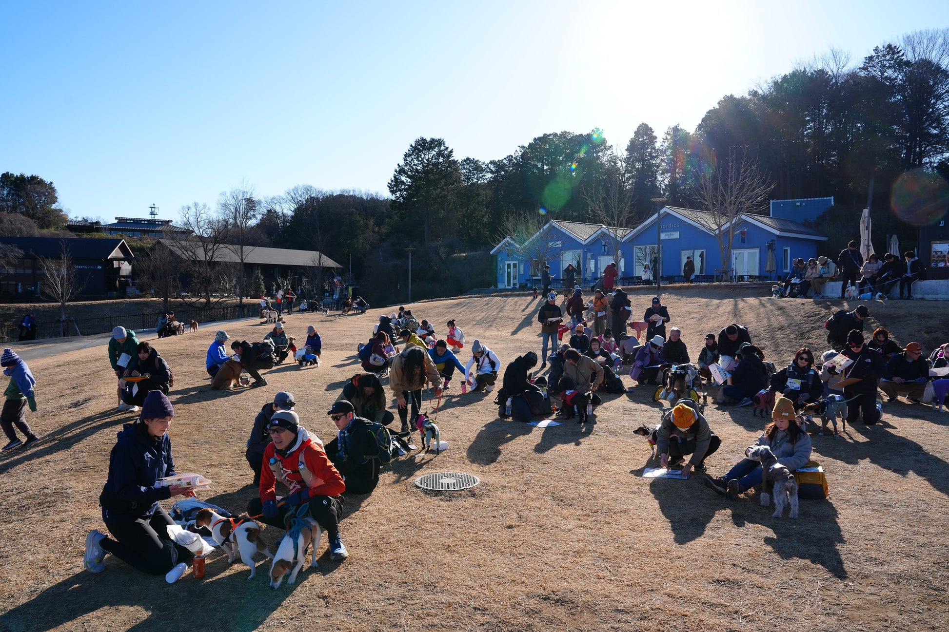 イヌと人がチームになって秩父市にある羊山公園を中心に山、川、街中のチェックポイントを地図を使って巡り、制限時間内にできるだけ多くのポイントを集める大会です。